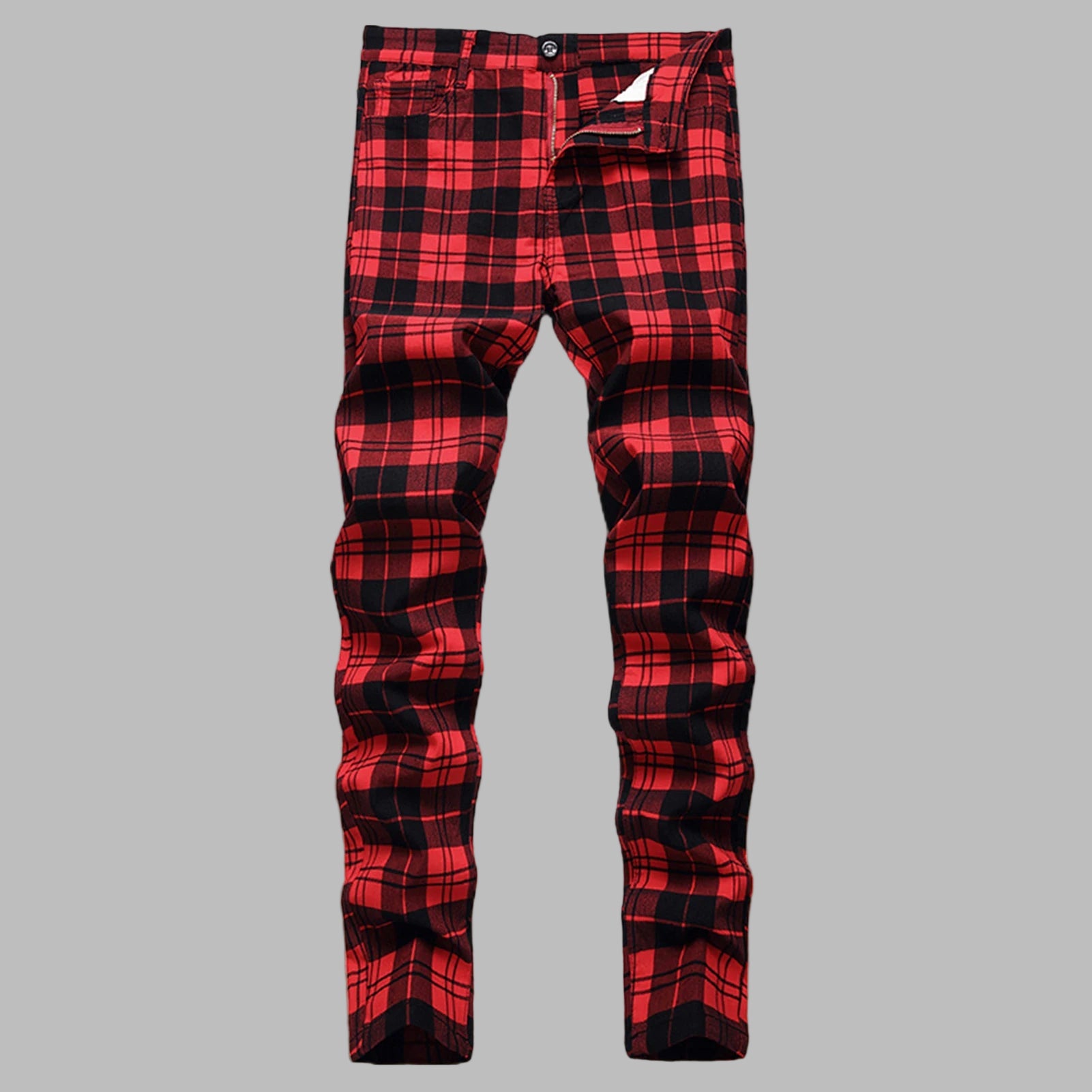 Pantalon Vintage Rock à Carreaux Rouge et Noir Métal