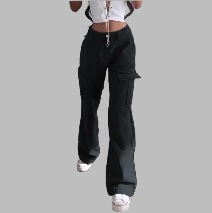 Pantalon Cargo Large Noir avec Poches Rock