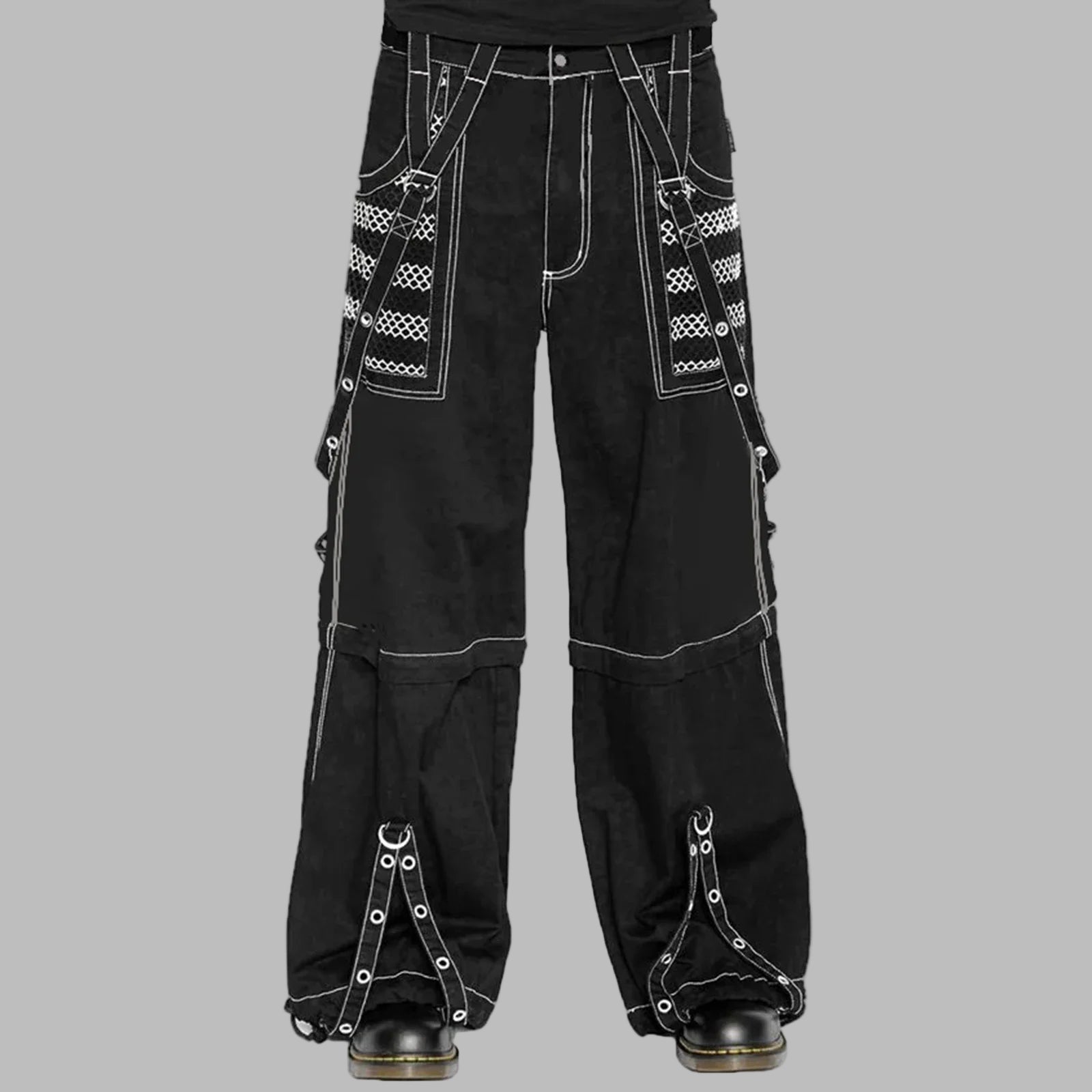 Pantalon Cargo Punk Métal Noir avec Détails Blancs