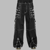 Pantalon Cargo Punk Métal avec Détails Blancs Noir L