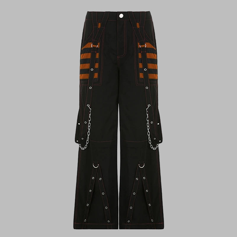 Pantalon Cargo Steampunk en Métal avec Chaînes et Sangles Marron Voir les options