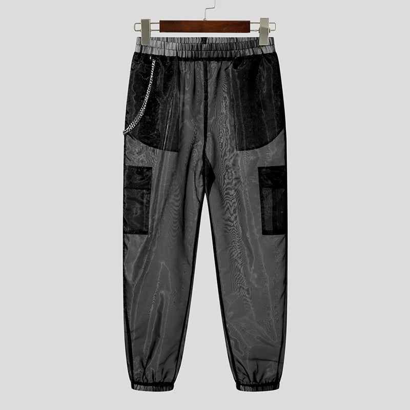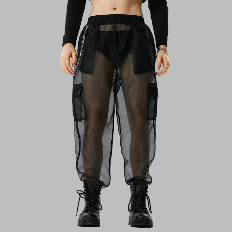 Pantalon Cargo Steampunk Gris avec Filet Urbain