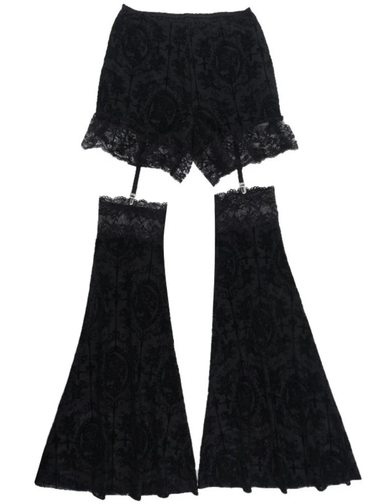 Pantalon Flare Gothique Noir en Dentelle avec Jupe Courte