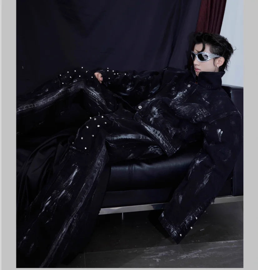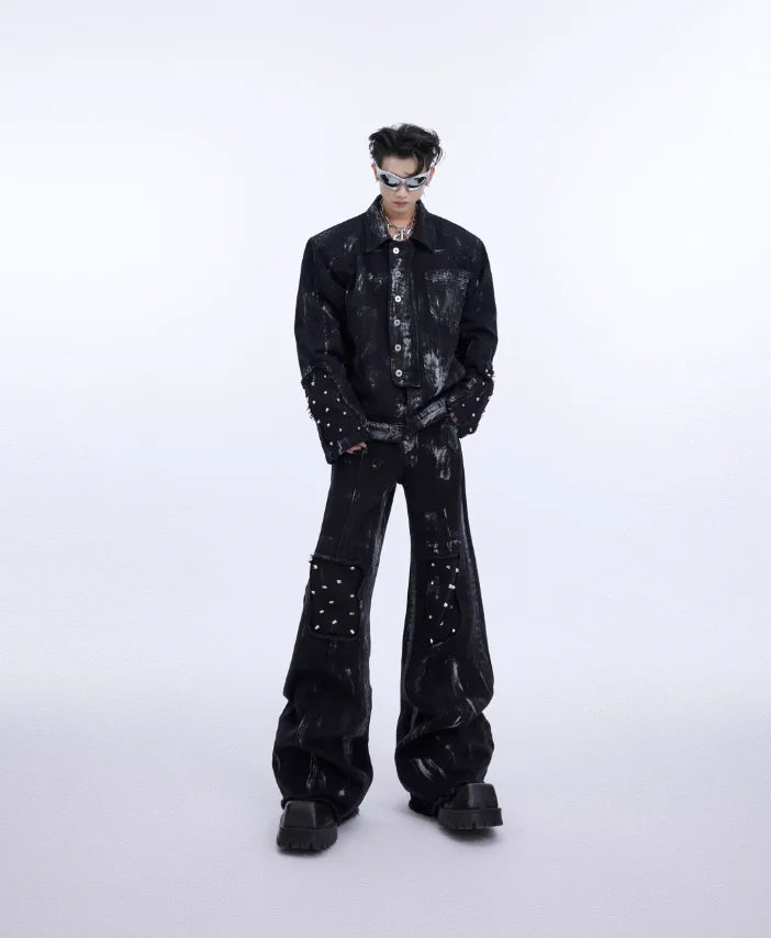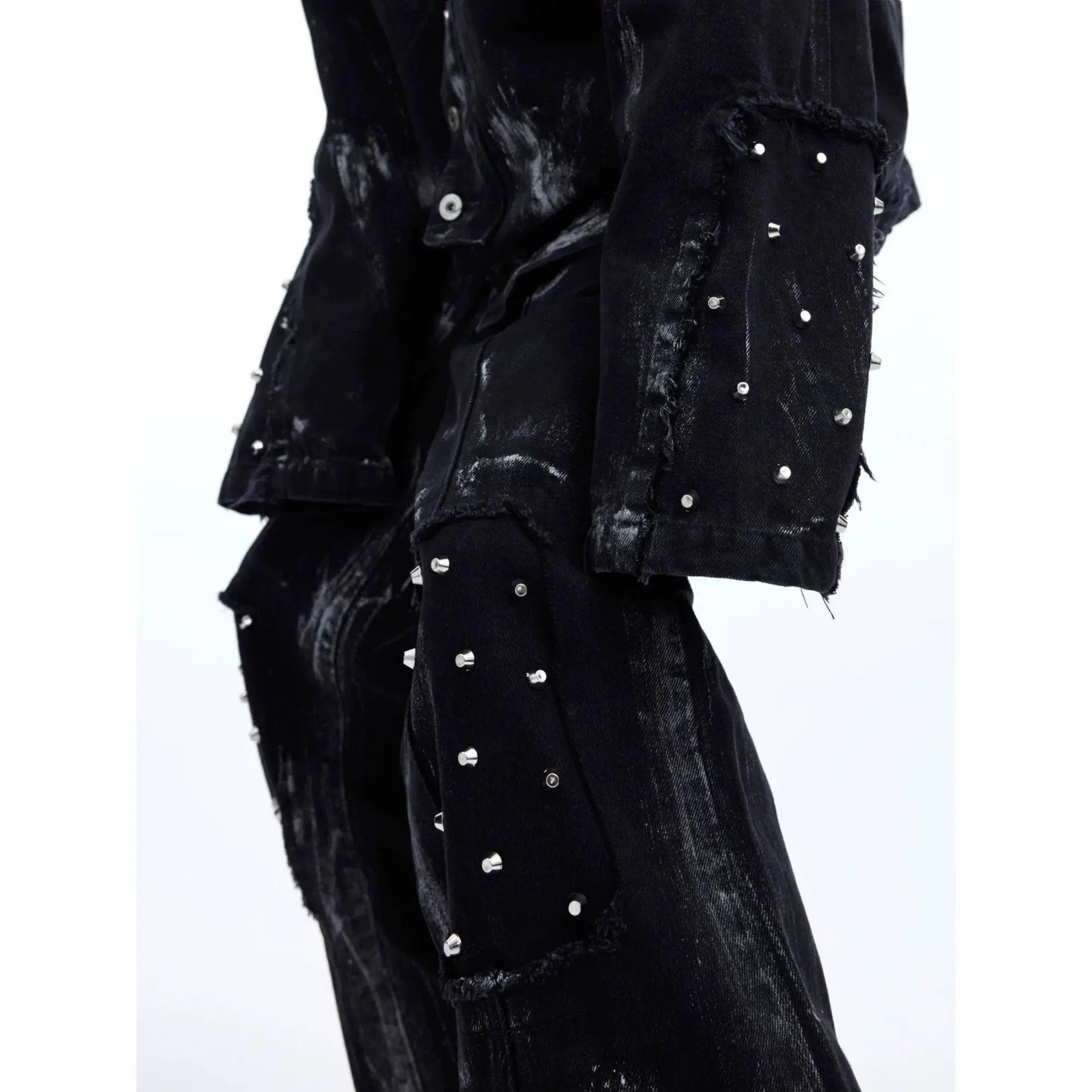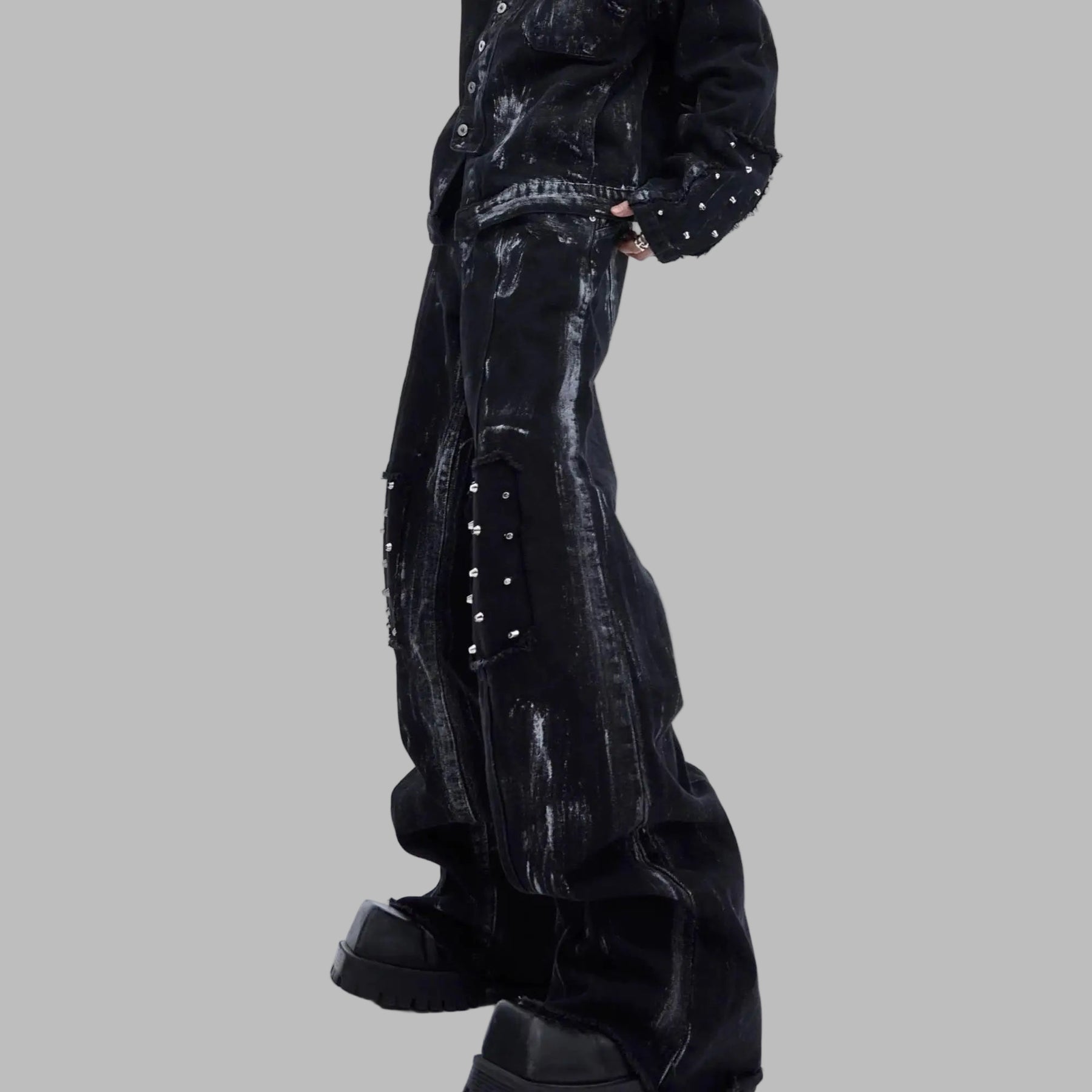 Pantalon Gothique Grunge Noir Clous Troué Vintage Oversize