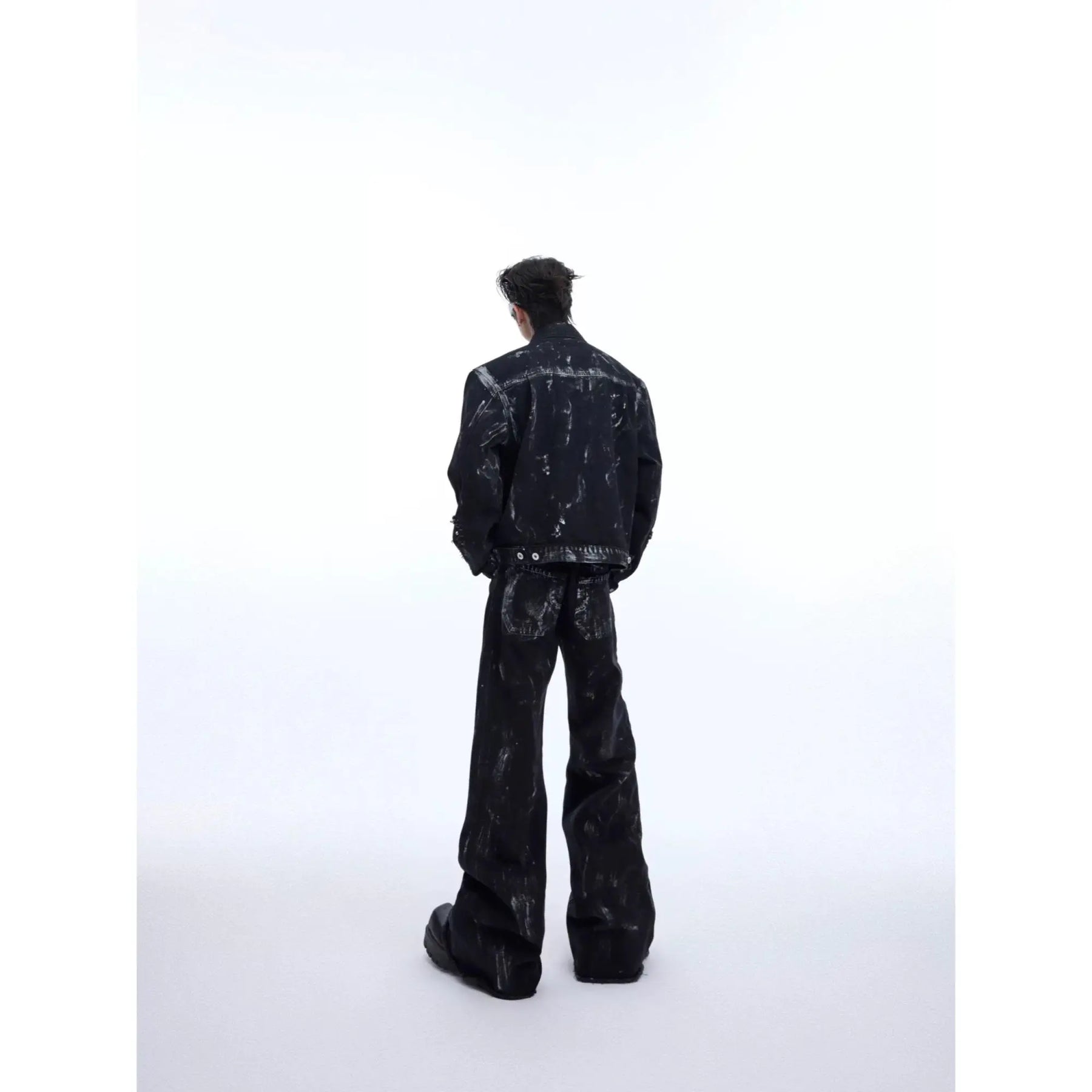 Pantalon gothique grunge noir clouté déchiré vintage oversize