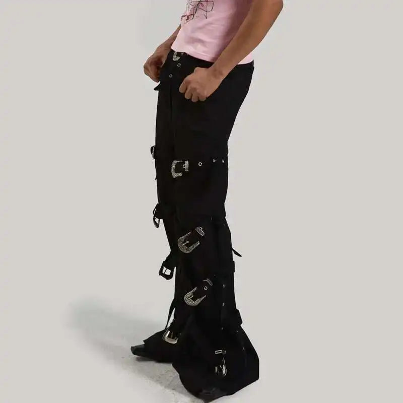 Pantalon gothique grunge punk avec boucles et sangles Voir les options