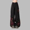 Pantalon gothique grunge punk large en jean déchiré avec inserts rouges