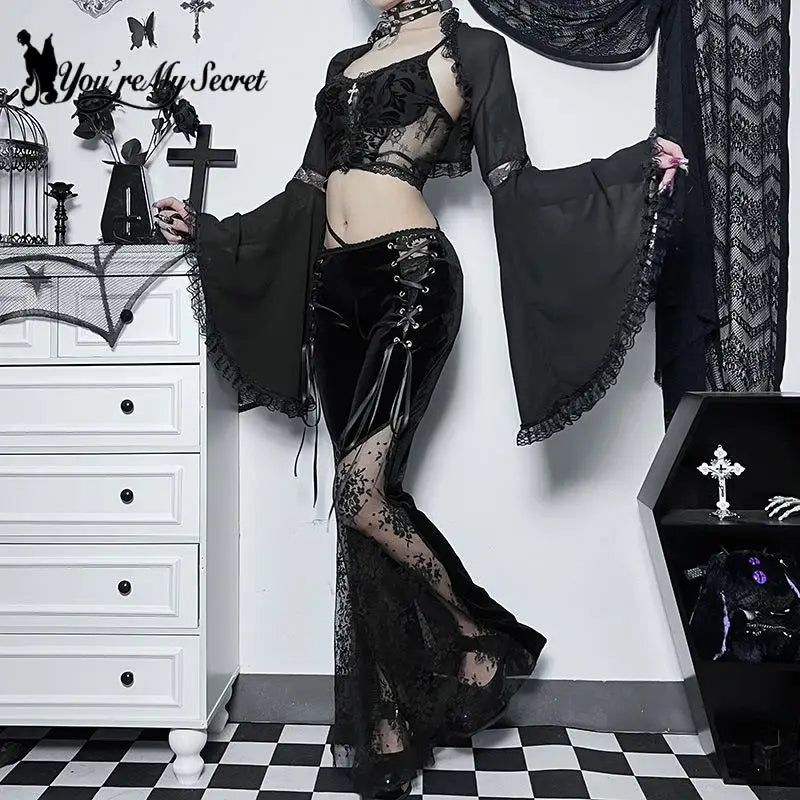 Pantalon gothique noir avec fentes et détails en dentelle Voir les options