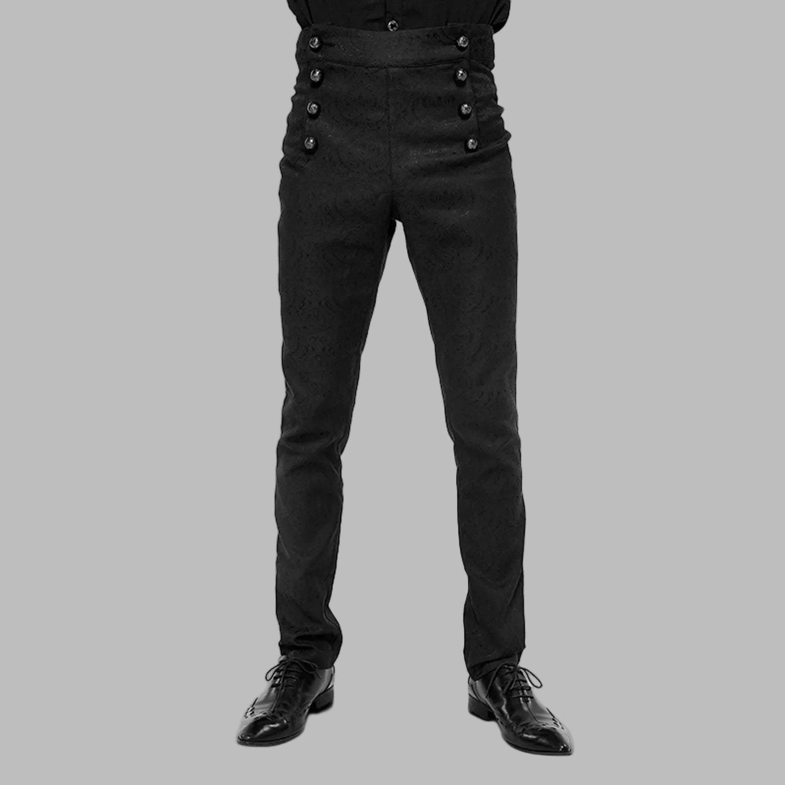Pantalon gothique noir pour homme à boutons taille haute habillé