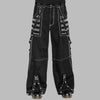 Pantalon gothique punk rock noir avec chaînes et poches en résille