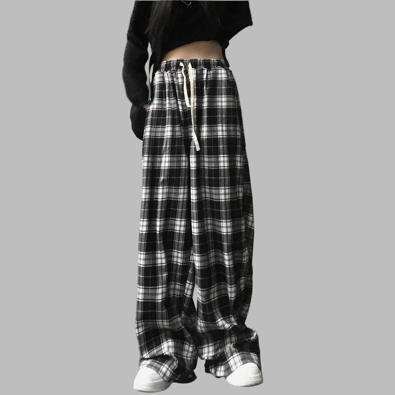 Pantalon large femme grunge punk à carreaux noir et blanc