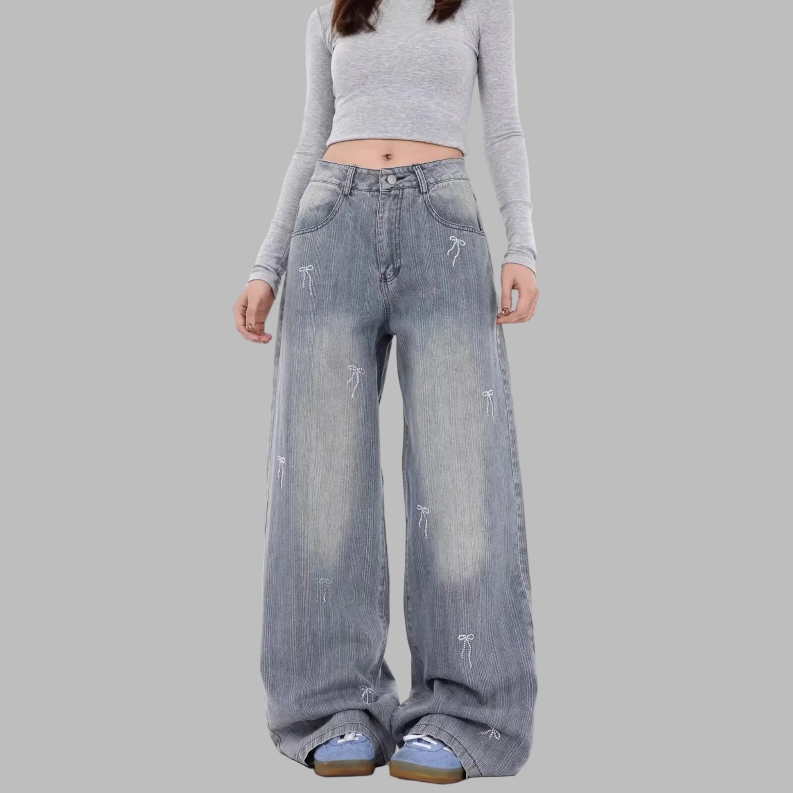 Pantalon large en jean grunge vintage avec rubans Voir les options