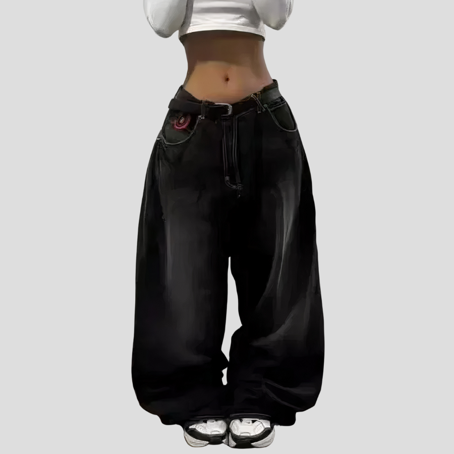 Szerokie Spodnie Punk z Nadrukami Grunge Baggy