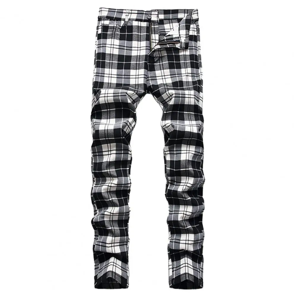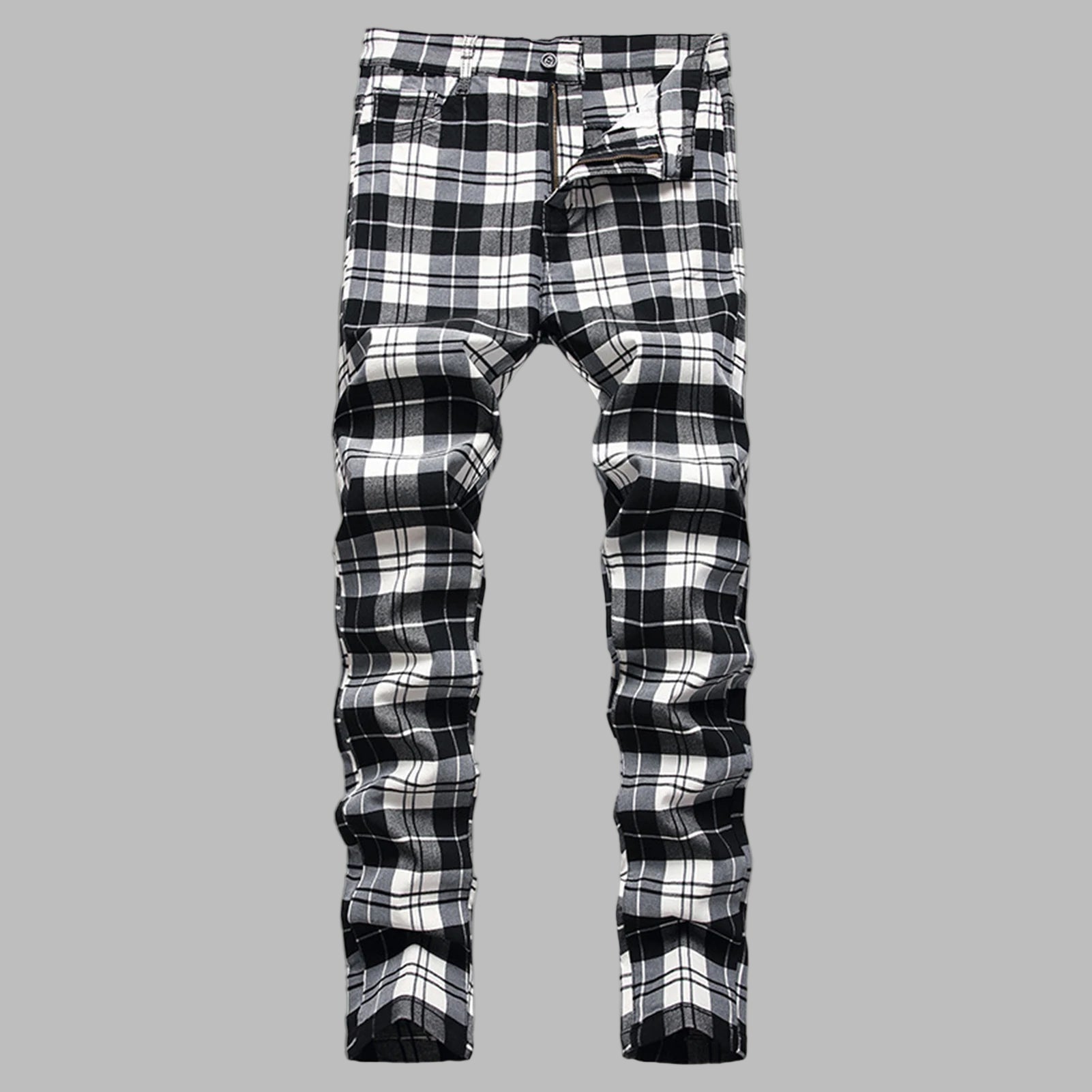 Pantalon Slim à Carreaux Noir et Blanc Punk Rock 4XL