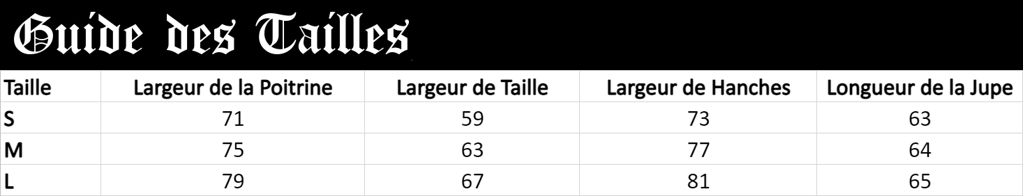 Taille Largeur de la Poitrine Largeur de la Taille Largeur des Hanches