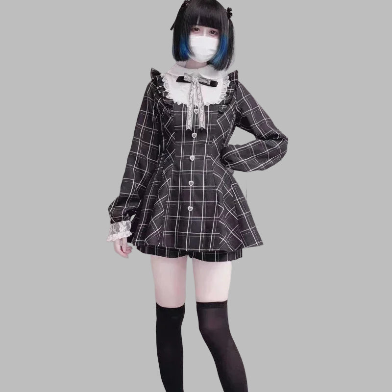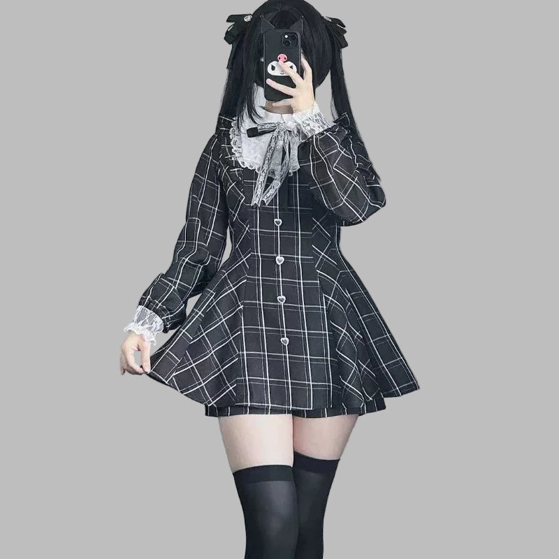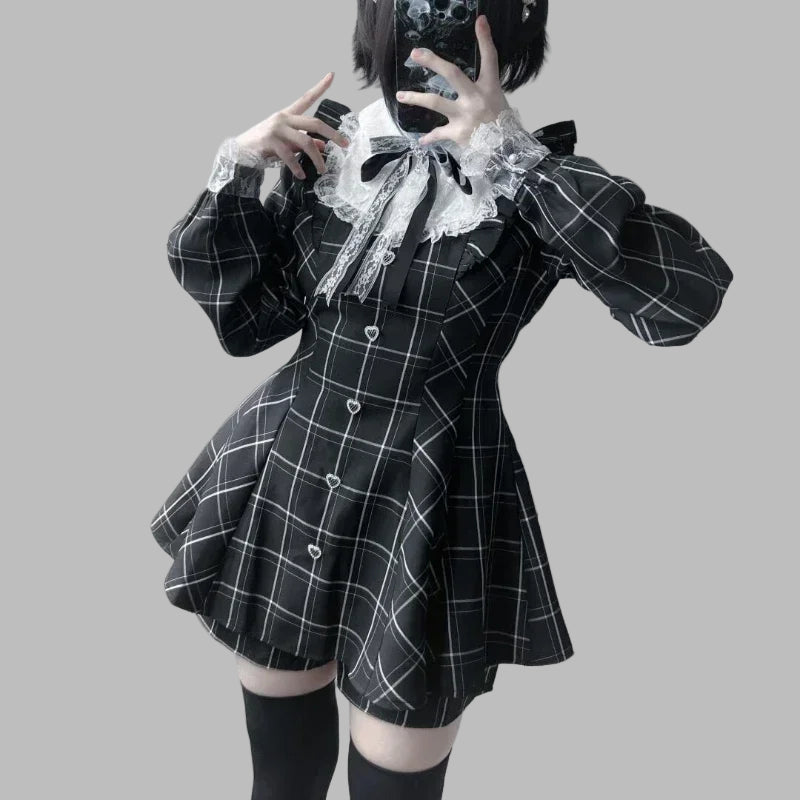 Robe gothique Lolita gothique noire à carreaux et dentelle