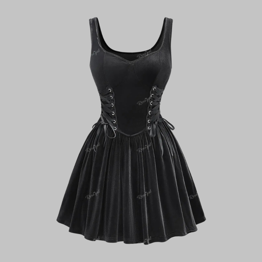 Robe gothique noire Rock avec corset et jupe évasée