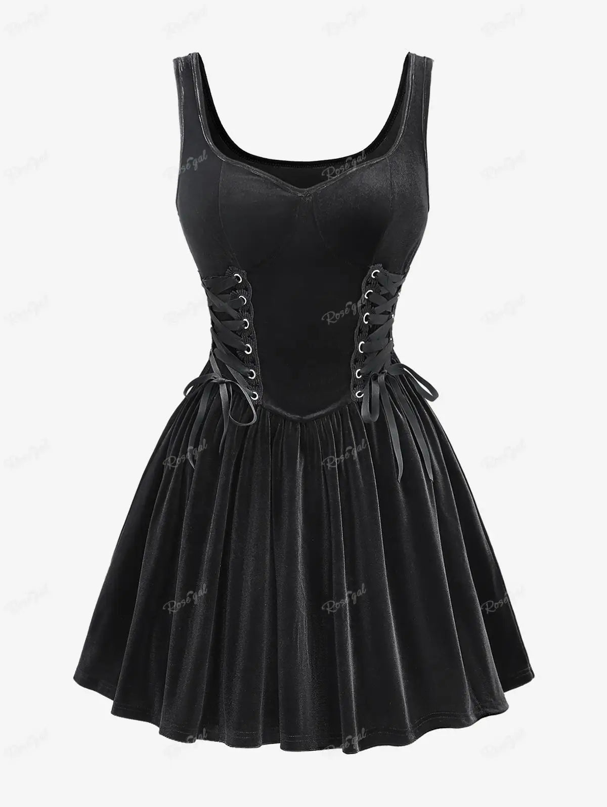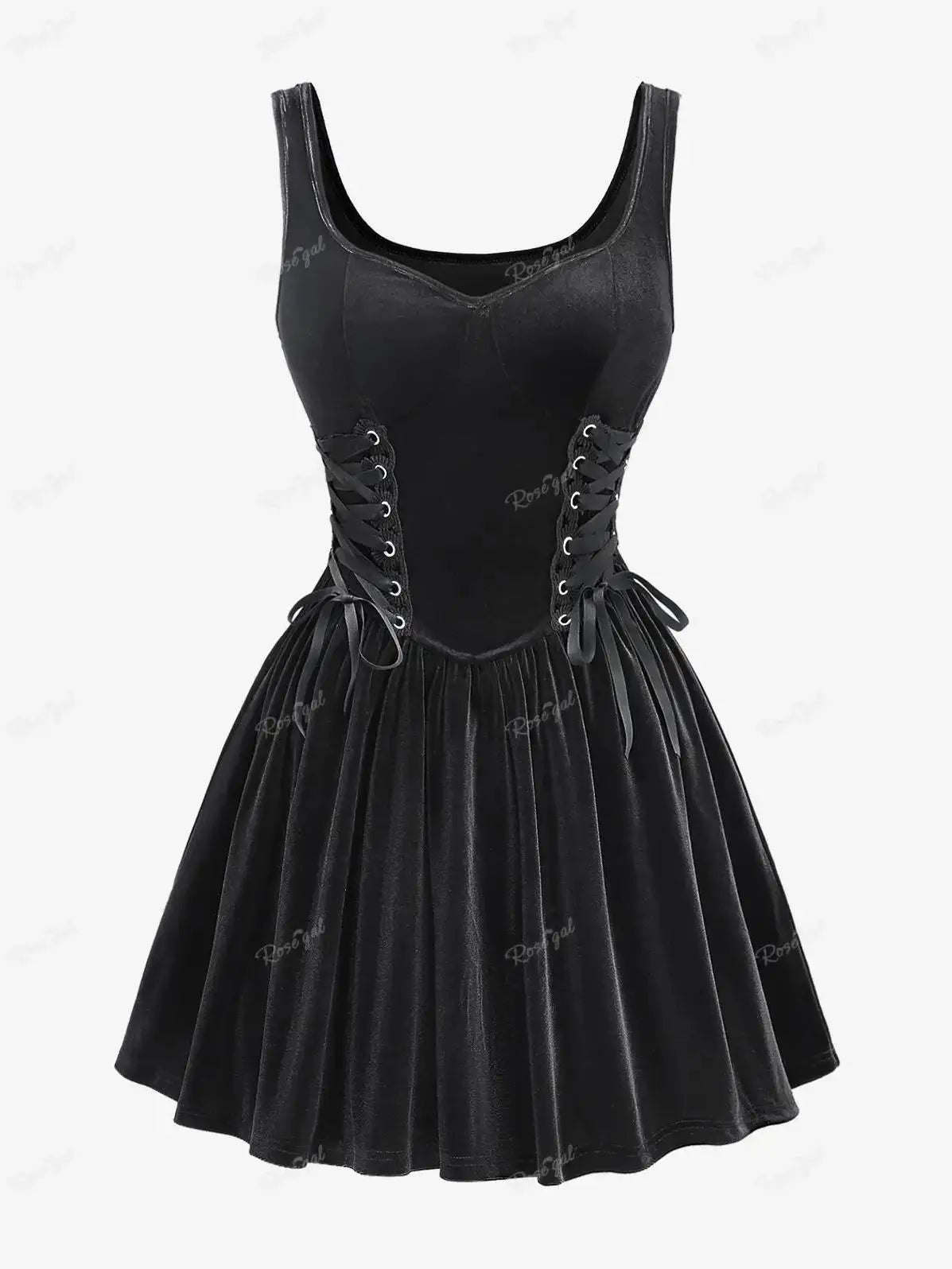Robe gothique noire Rock avec corset et jupe évasée Voir les options