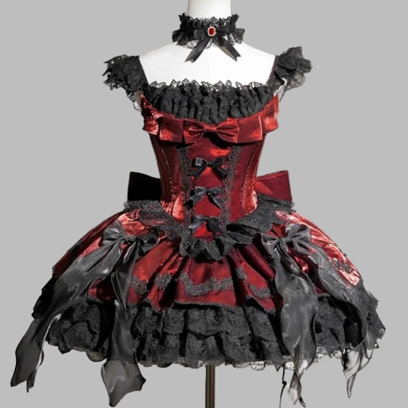 Robe Gothique Punk Lolita Rouge Noire Dentelle