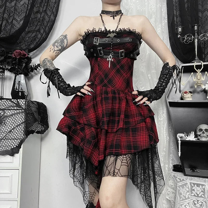 Robe gothique punk rock corset à carreaux rouge Voir les options