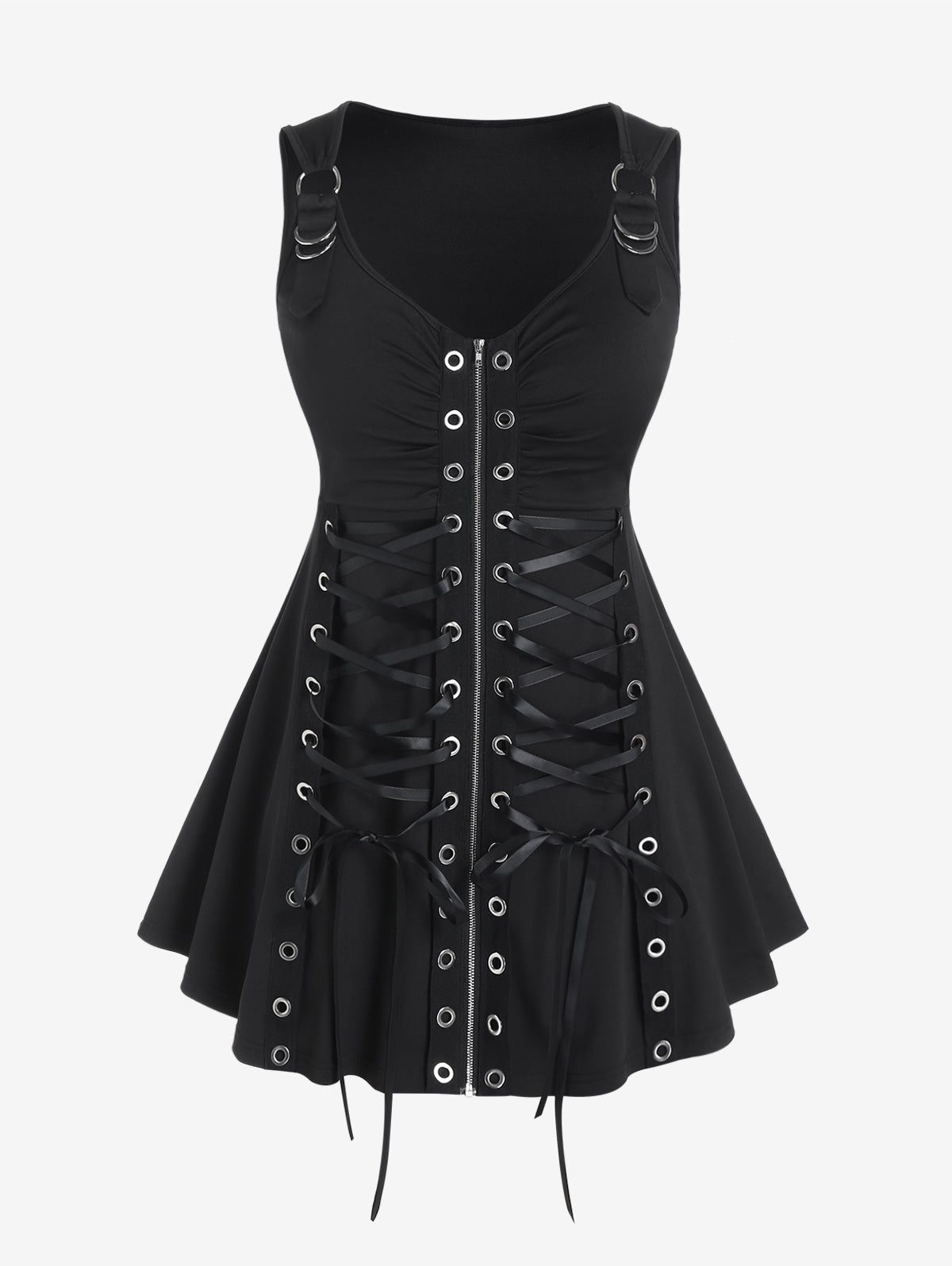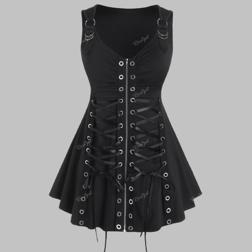 • Détails Raffinés : Le rabat à fermeture éclair complète et les finitions soignées ajoutent une touche de raffinement à cette robe gothique, tandis que la ceinture ornée d'une boucle introduit une pointe d'originalité.
