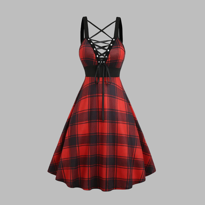 Robe Grunge Punk à Carreaux avec Lacets au Dos