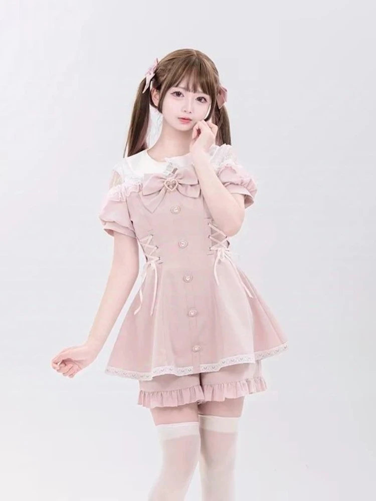 Jirai Kei Sukienka z Kokardą Różowa Sznurowana po Bokach