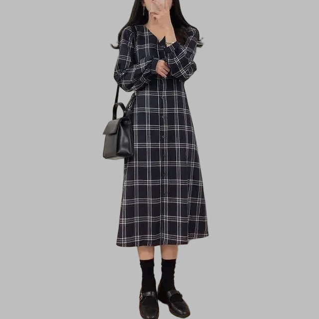 Robe Longue Punk à Carreaux Noire avec Manches XXL