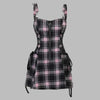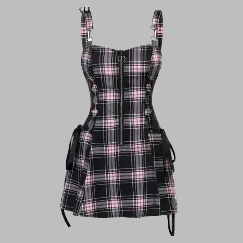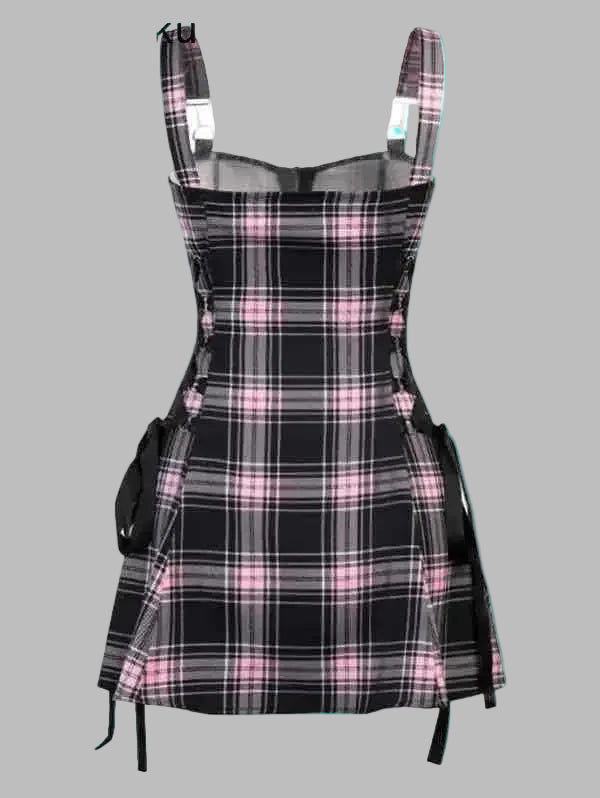 Robe Punk à Carreaux Roses avec Bretelles et Bandes