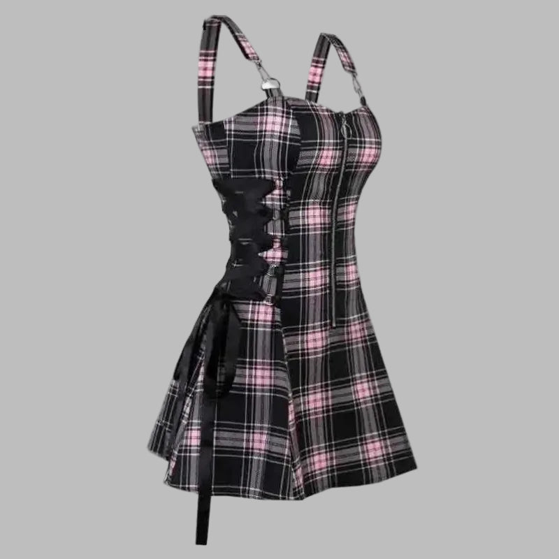 Robe Punk à Carreaux Roses avec Bretelles et Bandes Voir les options