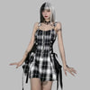 Robe Punk Rock à Carreaux avec Bretelles et Laçage