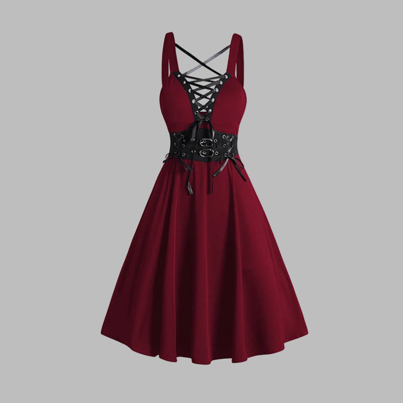 Robe Punk Rock Bordeaux avec Corset et Lacets