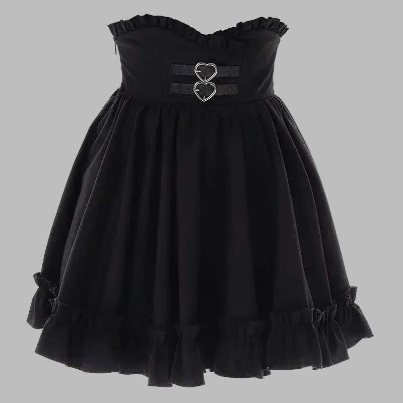 Robe Punk Rock Gothique Sans Bretelles avec Boucles en Forme de Cœur
