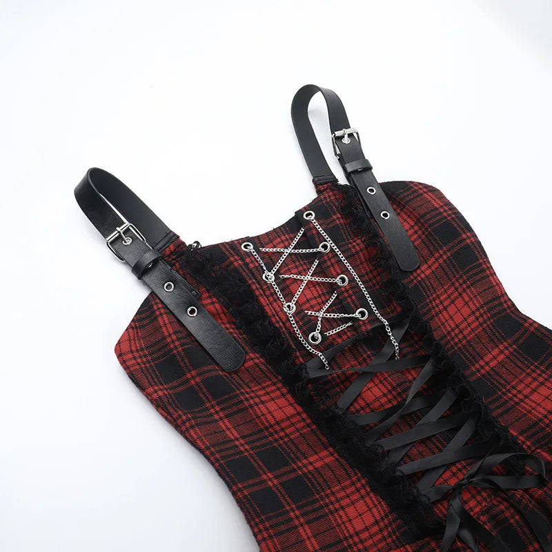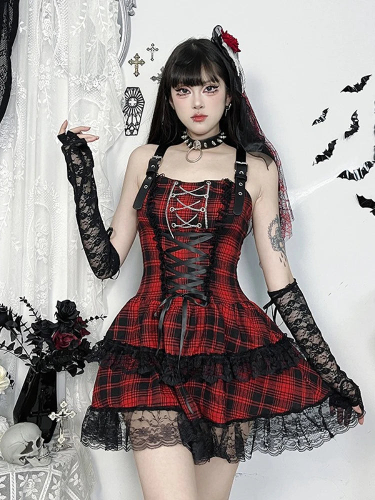 Robe punk rock rouge avec chaînes et dentelle Voir les options