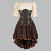 Robe Steampunk avec Corset Chaînes et Jupe en Dentelle Marron