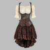 Robe Steampunk avec Corset Rayé et Jupe en Dentelle Marron