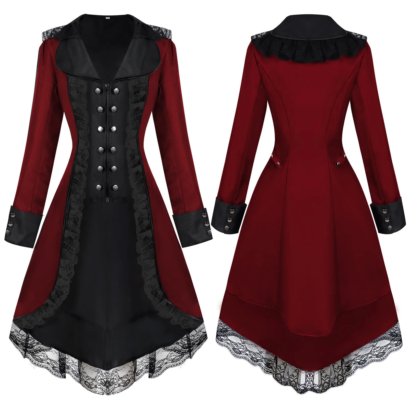 Robe Steampunk bordeaux avec corset noir et dentelle Voir les options