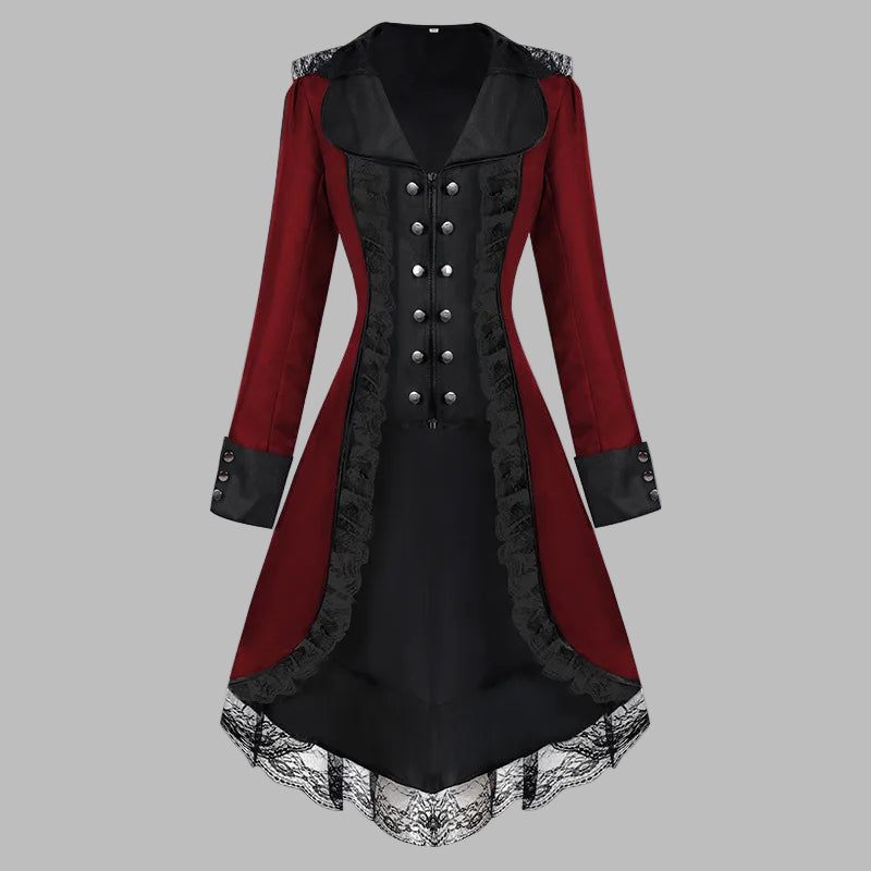 Robe Steampunk bordeaux avec corset noir et dentelle