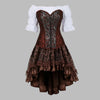 Robe Steampunk Marron avec Corset Brodé et Manches Bouffantes 6XL