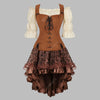 Robe Steampunk Marron avec Laçage et Jupe Asymétrique