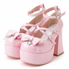 Sandales à plateforme rose clair avec brides et nœuds Jirai Kei