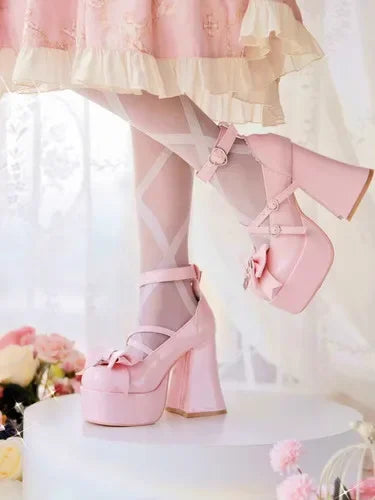 Plateformes rose clair avec brides et nœuds Jirai Kei