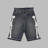 Short en Jean Rock avec Os Blancs Metal Hardcore