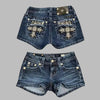 Short en Jean Rock Grunge avec Croix Métalliques et Clous