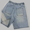 Shorts gris style grunge rock avec bandes blanches et inscription