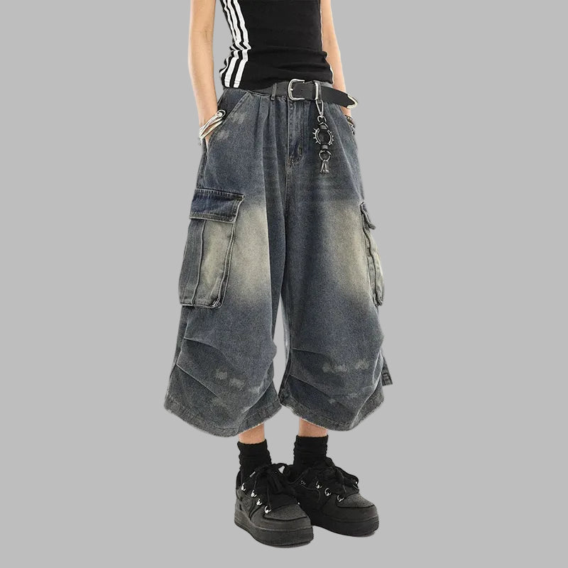 Shorts Cargo Larges en Jean Style Grunge pour Femme