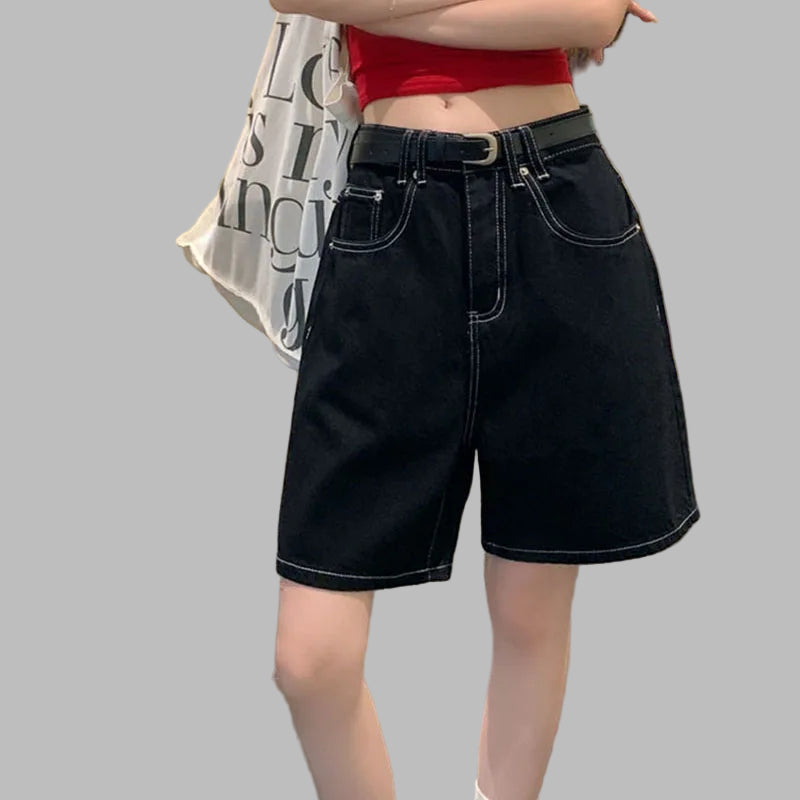 Shorts gothiques noirs pour femme avec coutures contrastées grunge oversize