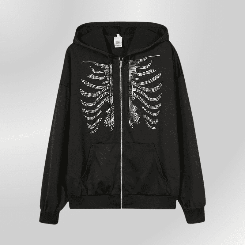 Sweat à capuche gothique noir avec motif squelette Voir les options