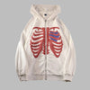 Sweat à Capuche Punk Rock à Fermeture Éclair Anatomie des Côtes Blanche