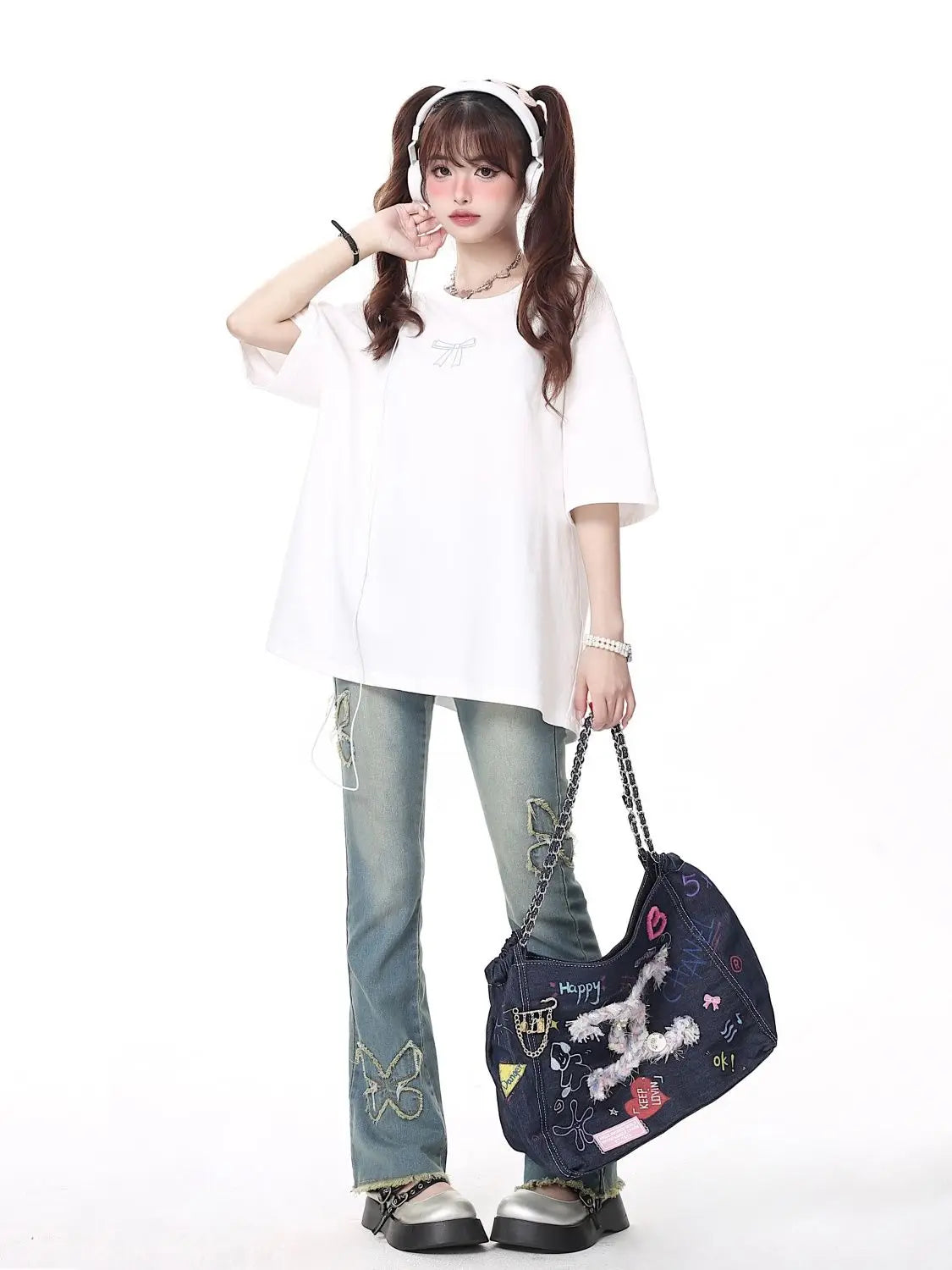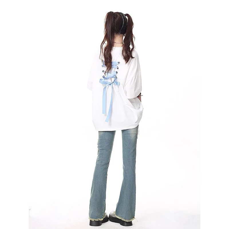 Sweat Rock Blanc avec Lacets au Dos et Nœud Bleu Voir les options